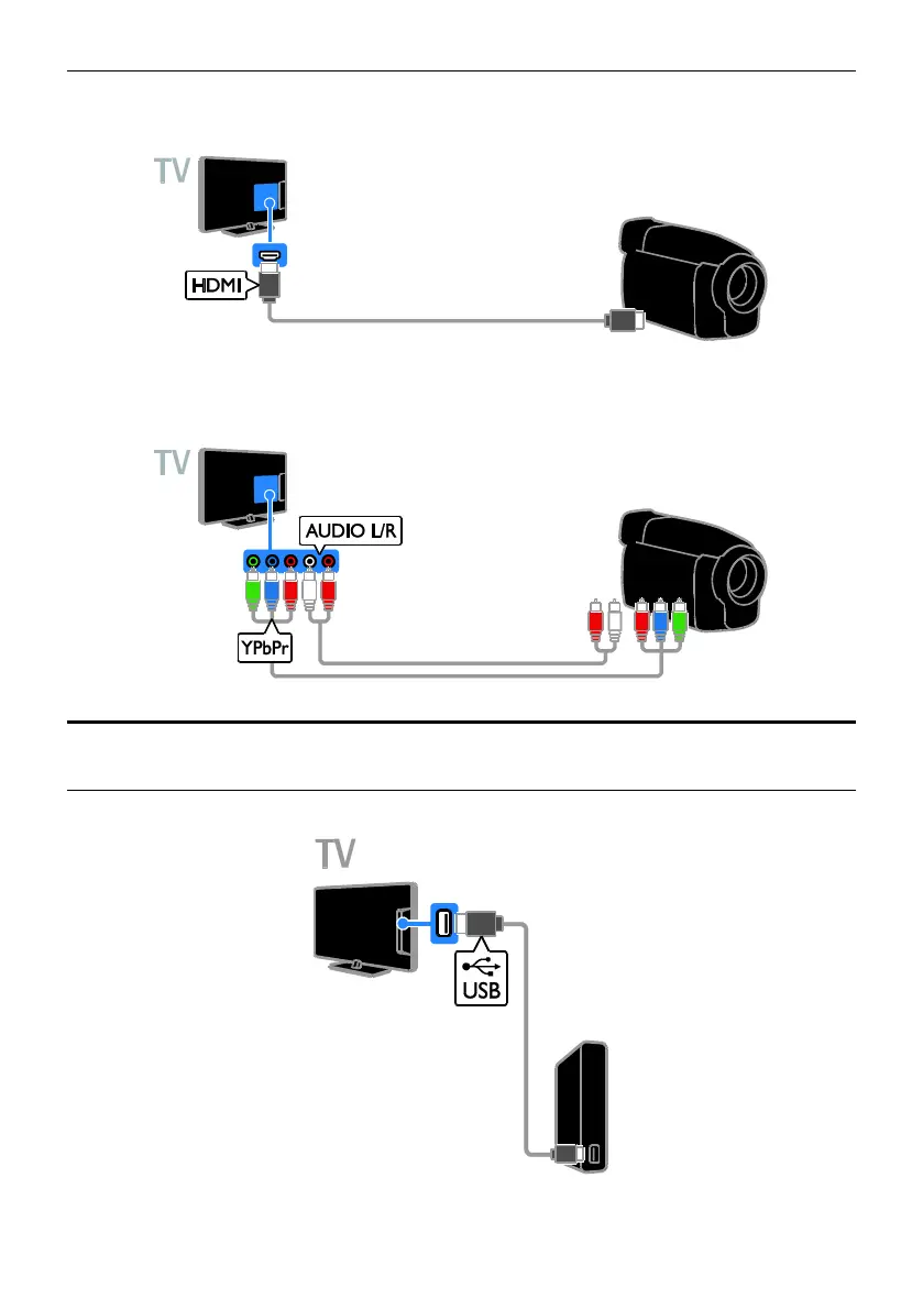 Connect the digital camcorder to the TV with a component video cable (Y Pb Pr) and an audio L/R