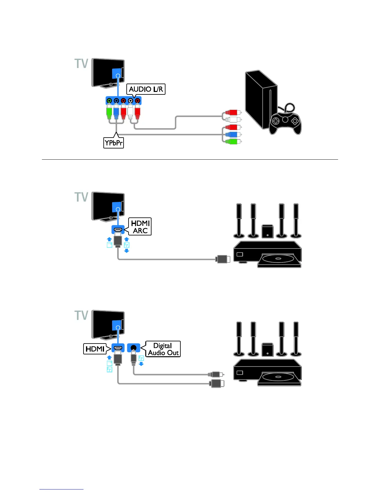 Connect the game console to the TV with a component video cable (Y Pb Pr) and an audio L/R