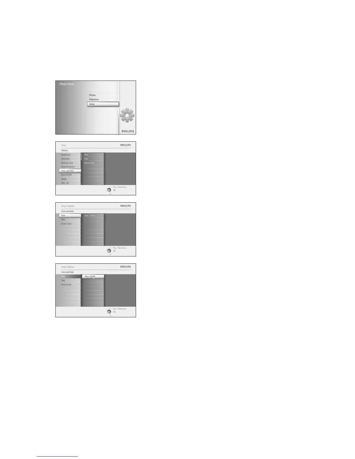 Navigeer naar boven en beneden om Time (Tijd) te selecteren.