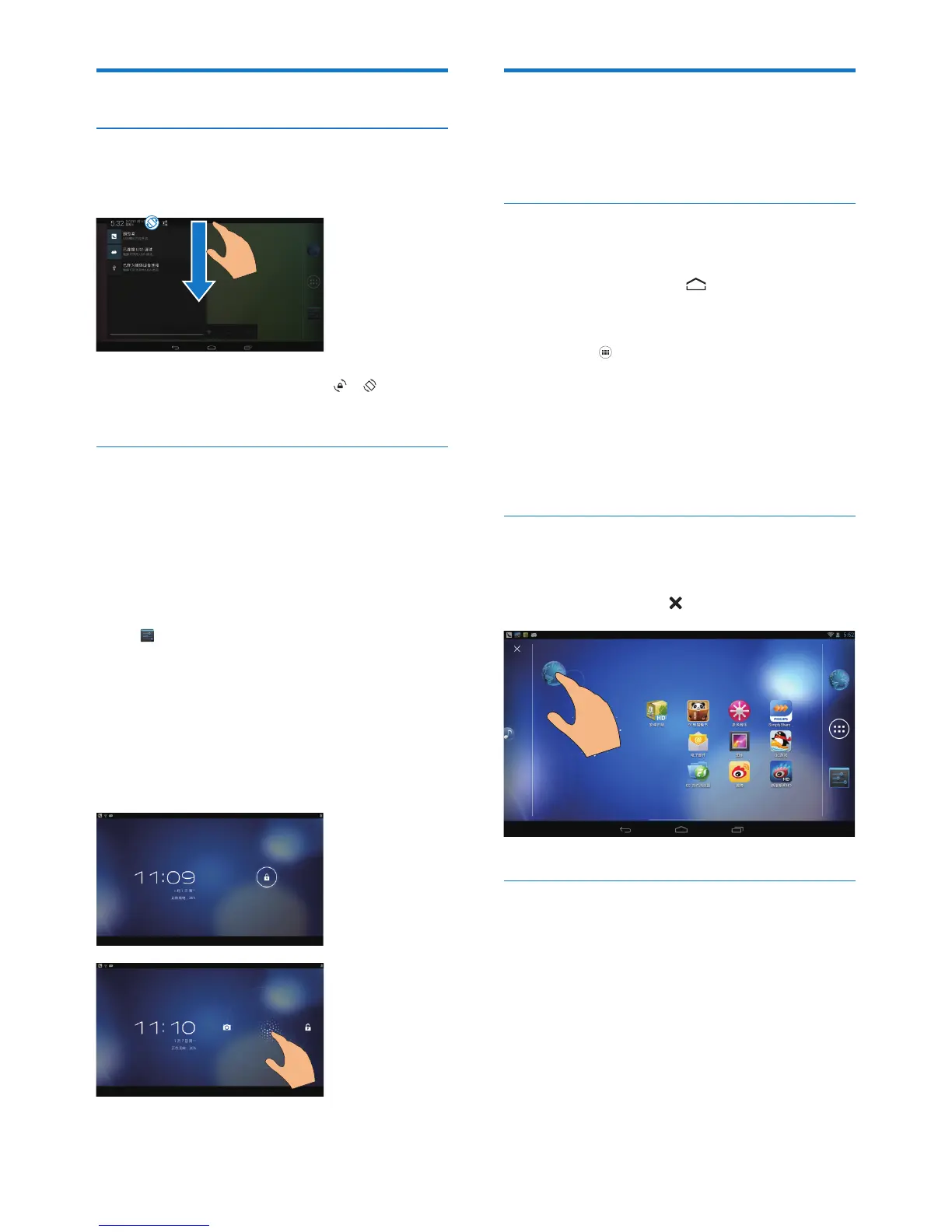1 Swipe left/ right to select a page.