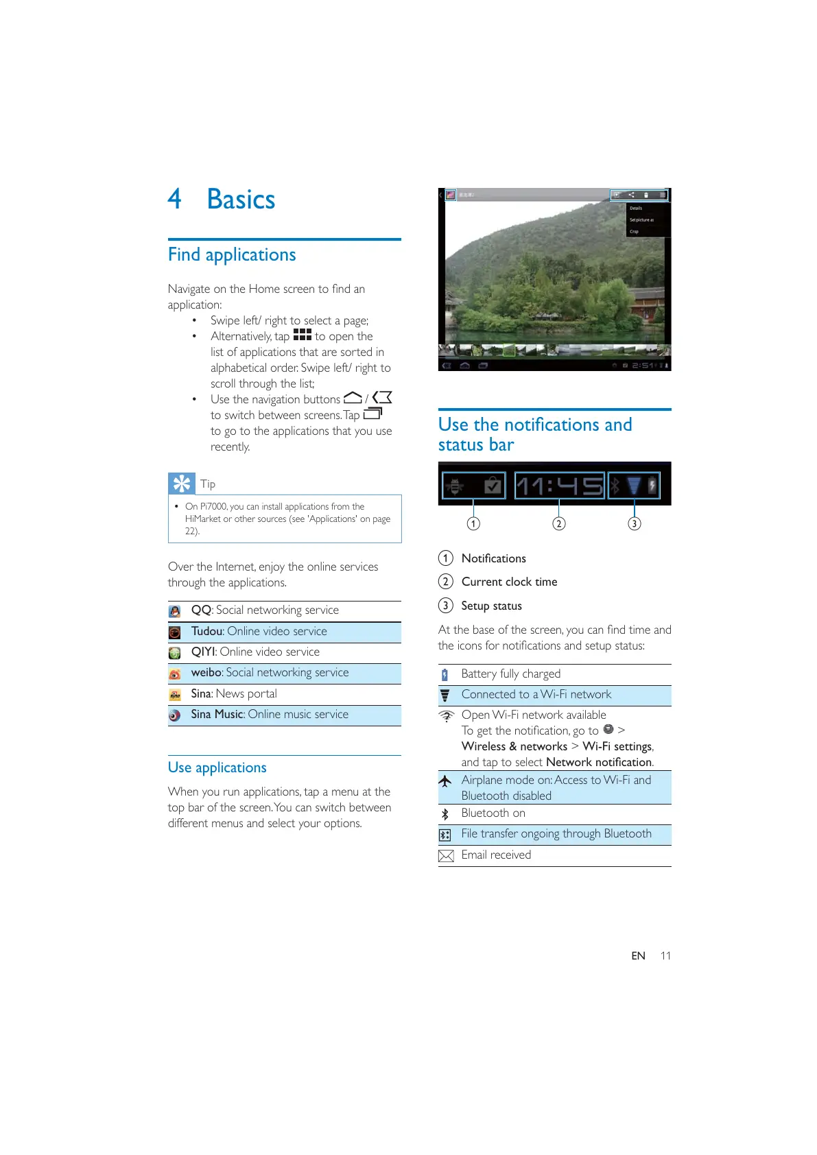 When you run applications, tap a menu at the