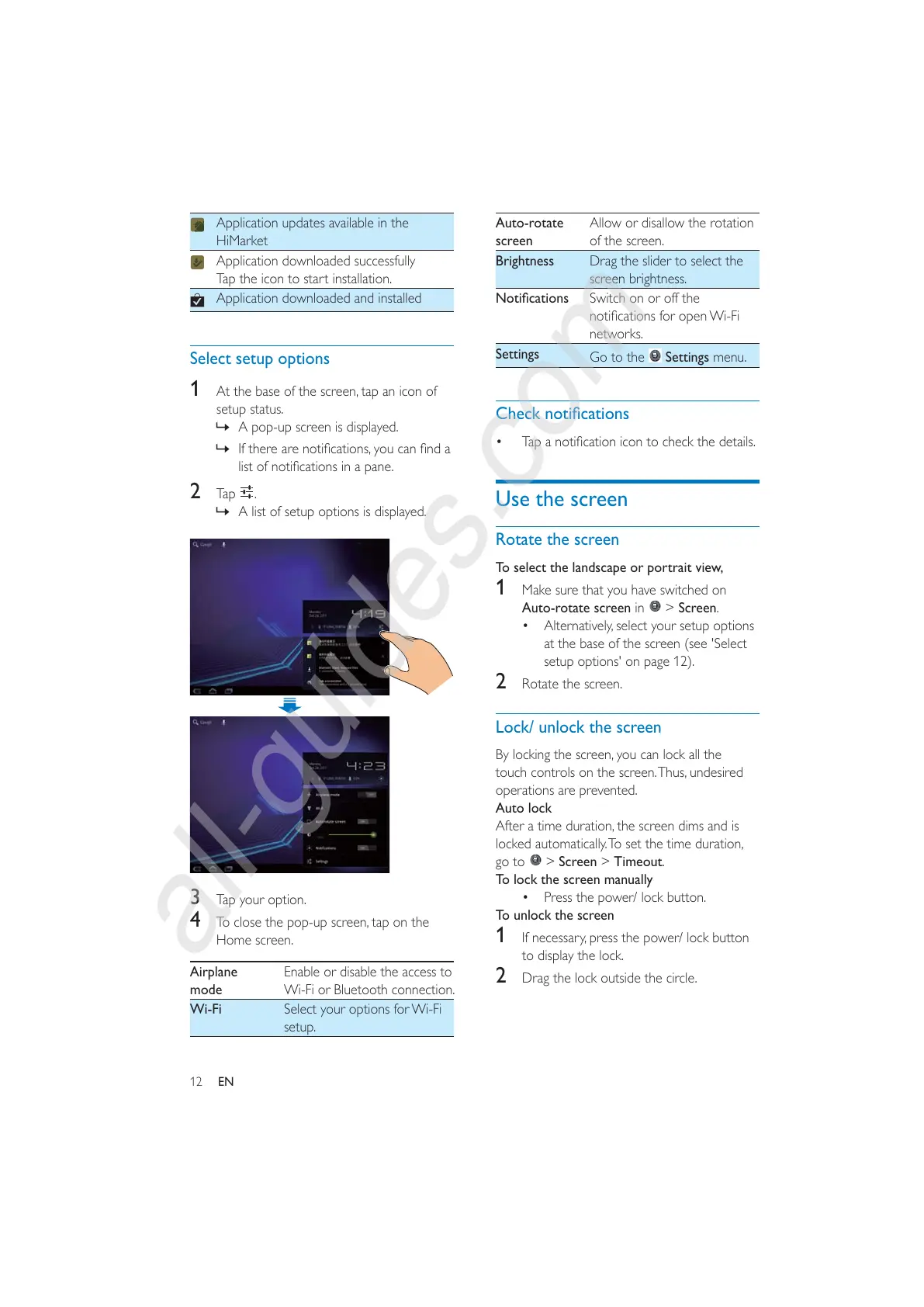 4 To close the pop-up screen, tap on the