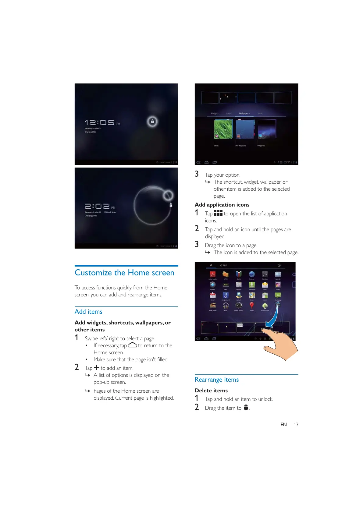 Add widgets, shortcuts, wallpapers, or