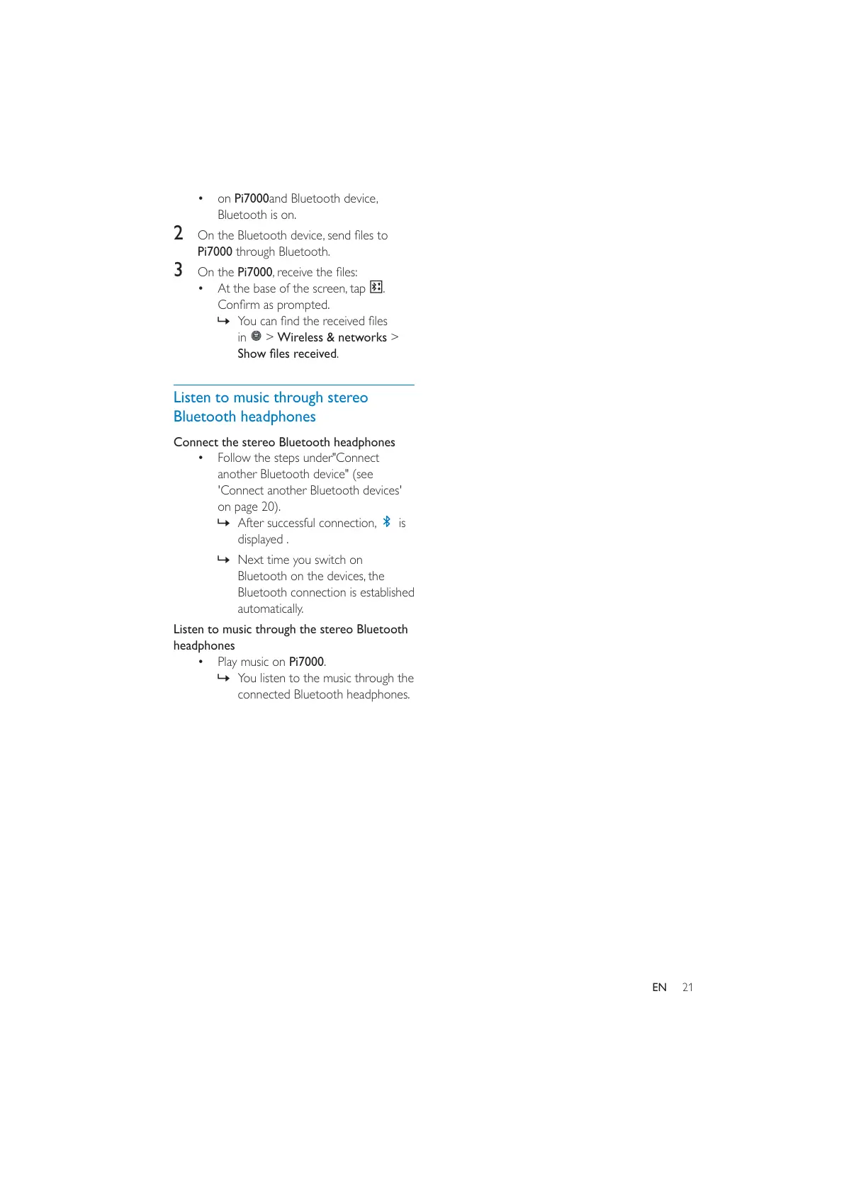 on Pi7000and Bluetooth device,