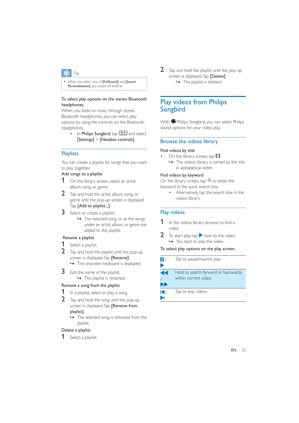 1 In a playlist, select or play a song.