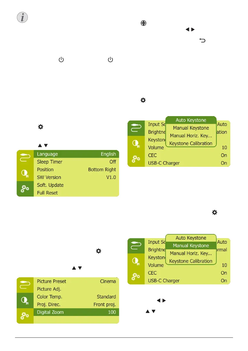 1 Press and hold on the projector (or on