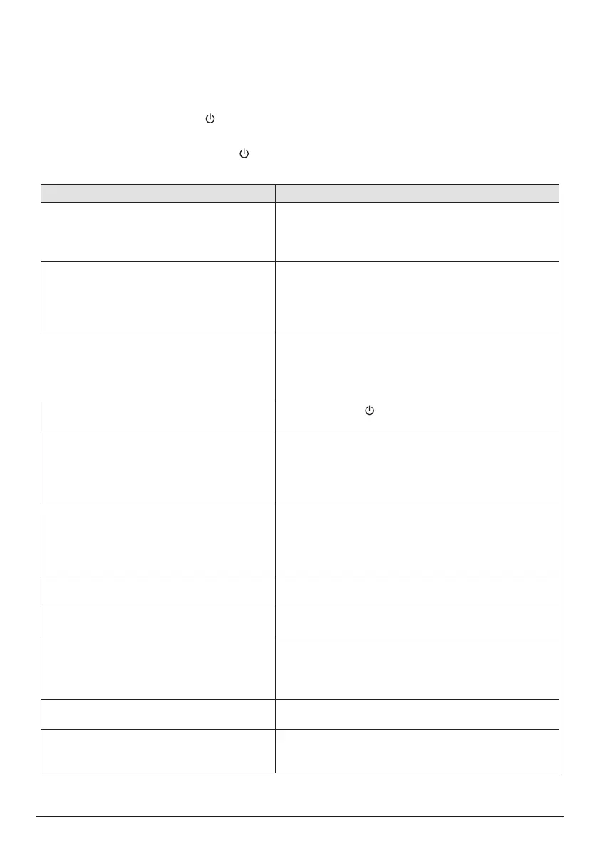 The projector cannot be turned on. • Disconnect and reconnect the power cable, and try to