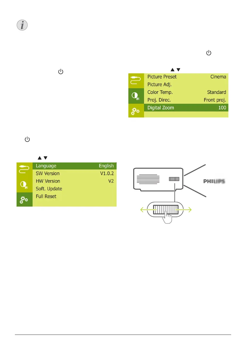 1 Press and hold on the projector for