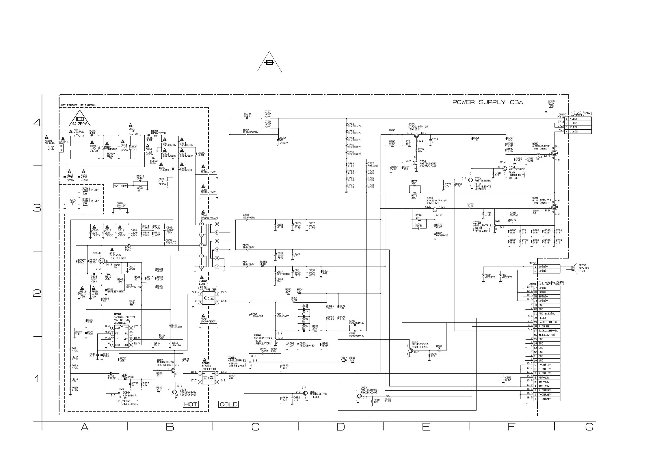 If Main Fuse (F601) is blown , check to see that all components in the power supply