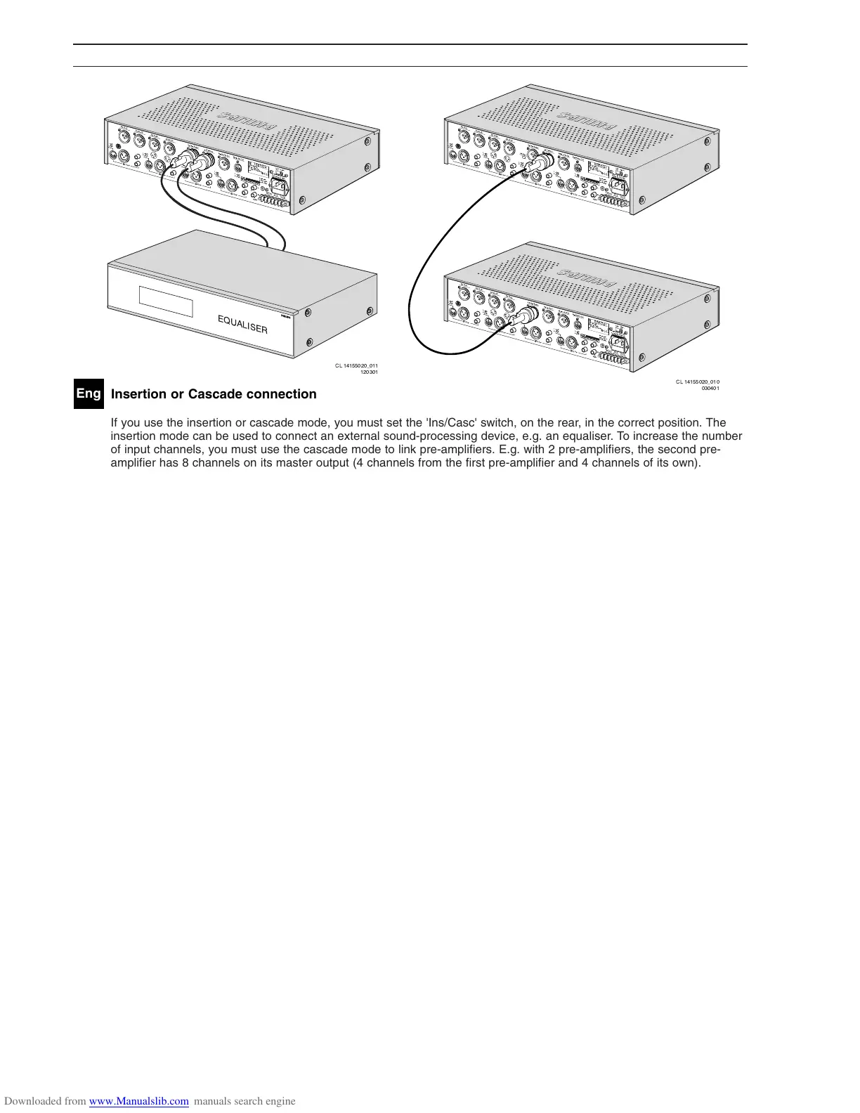 of input channels, you must use the cascade mode to link pre-amplifiers. E.g. with 2 pre-amplifiers, the second pre-