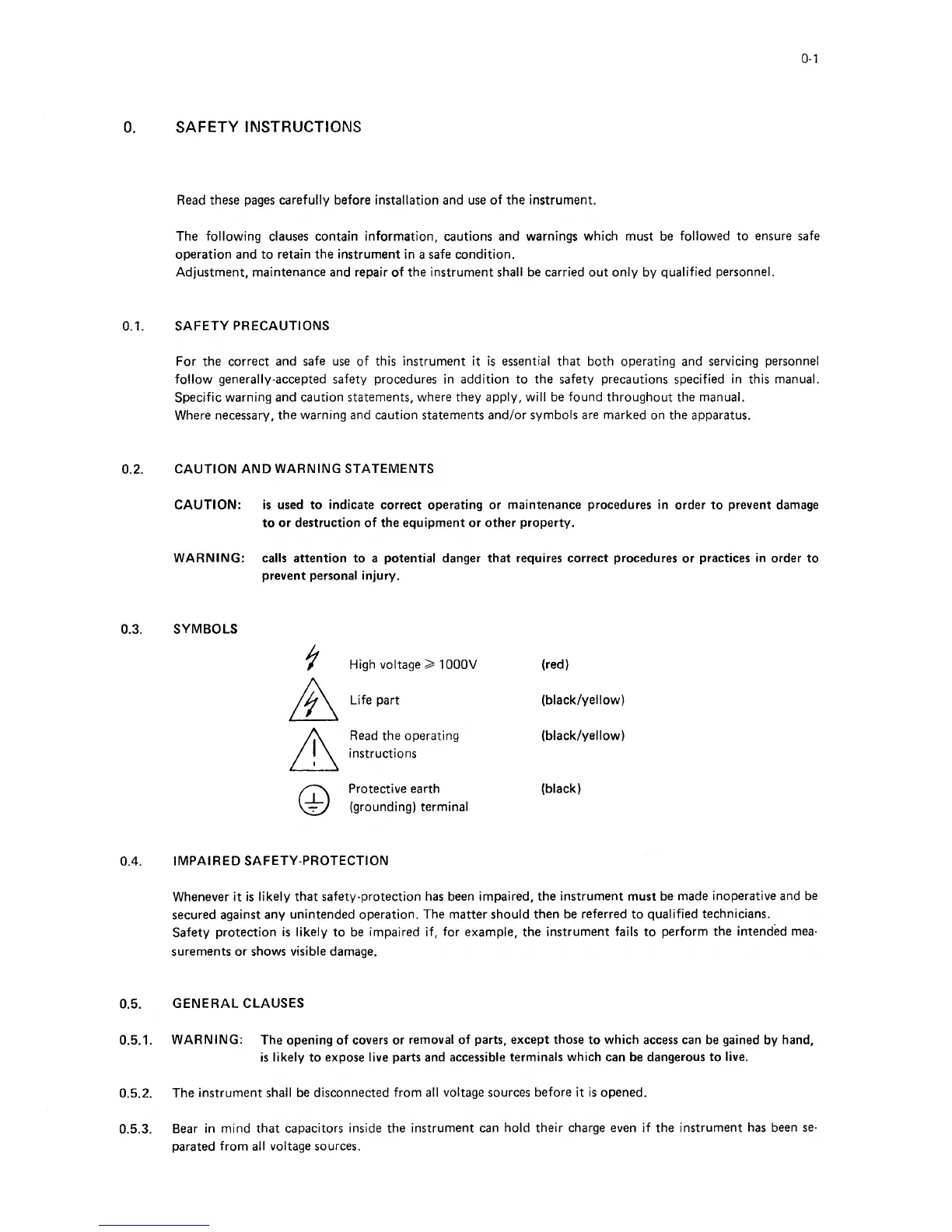 Philips PM 3256 - Safety Instructions; Safety Precautions; Caution and Warning Statements; General Safety Information