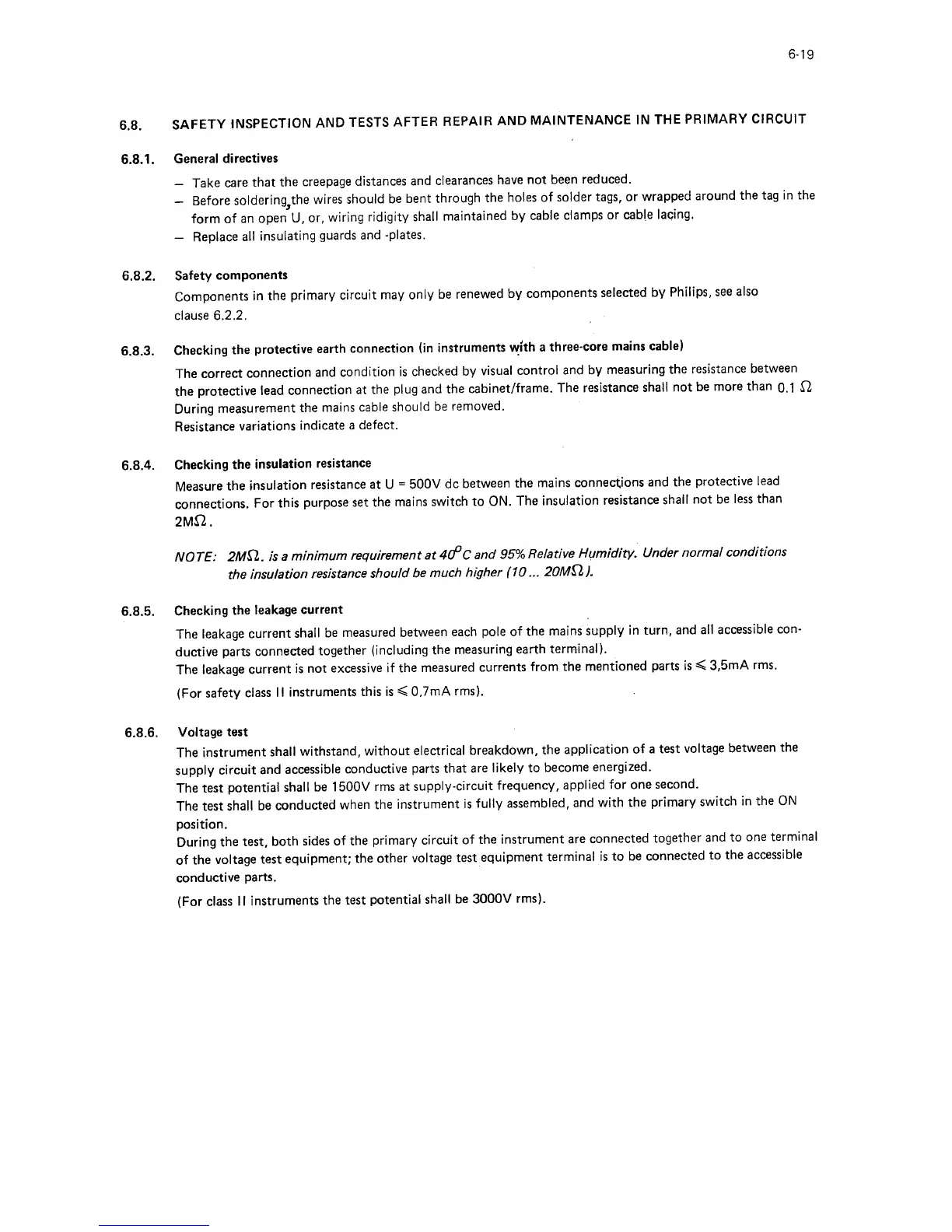Philips PM 3256 - Safety Inspection and Tests; General Directives and Safety; Earth and Insulation Checks