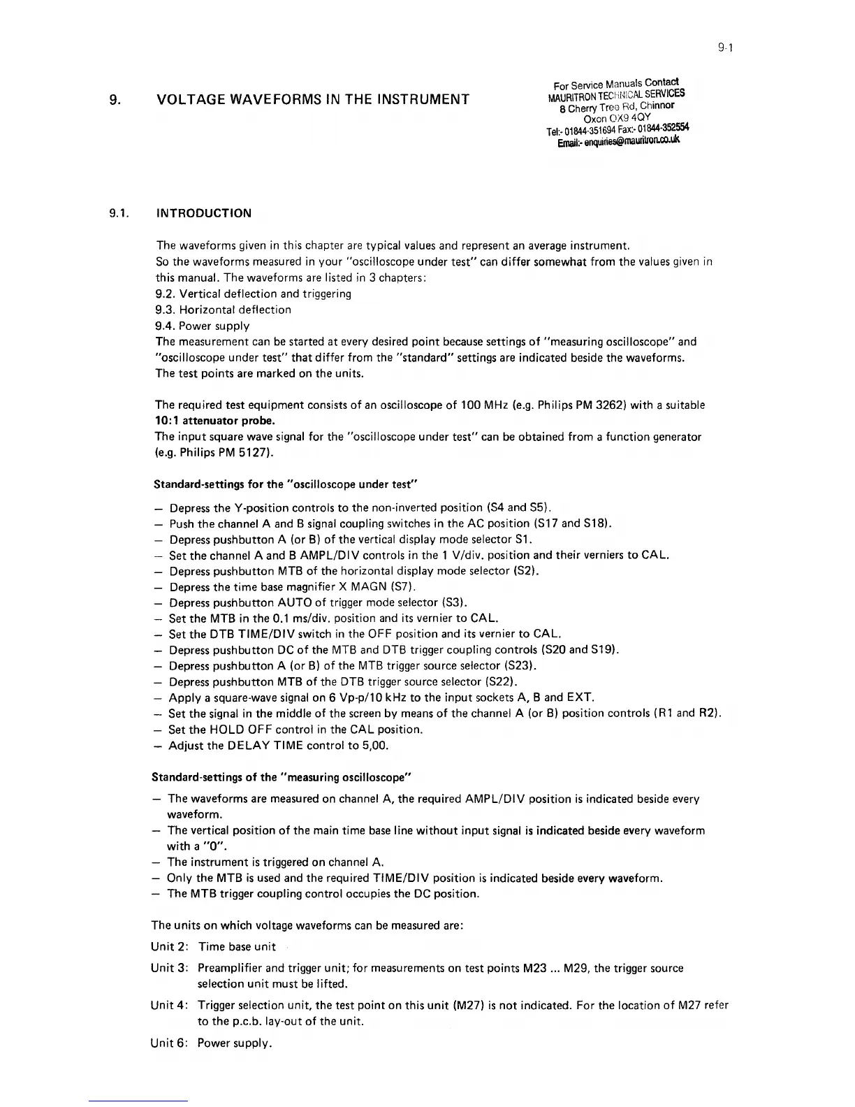 Philips PM 3256 - Voltage Waveforms in the Instrument; Introduction to Waveforms; Vertical Deflection and Triggering Waveforms