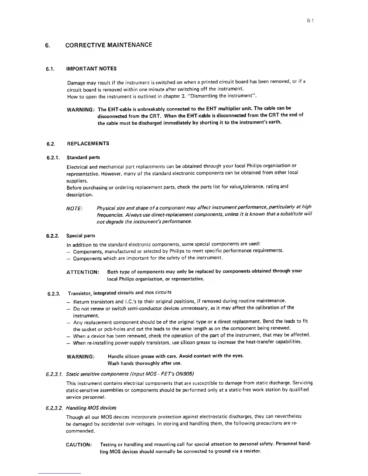 Philips PM 3256U - CORRECTIVE MAINTENANCE; IMPORTANT NOTES; REPLACEMENTS