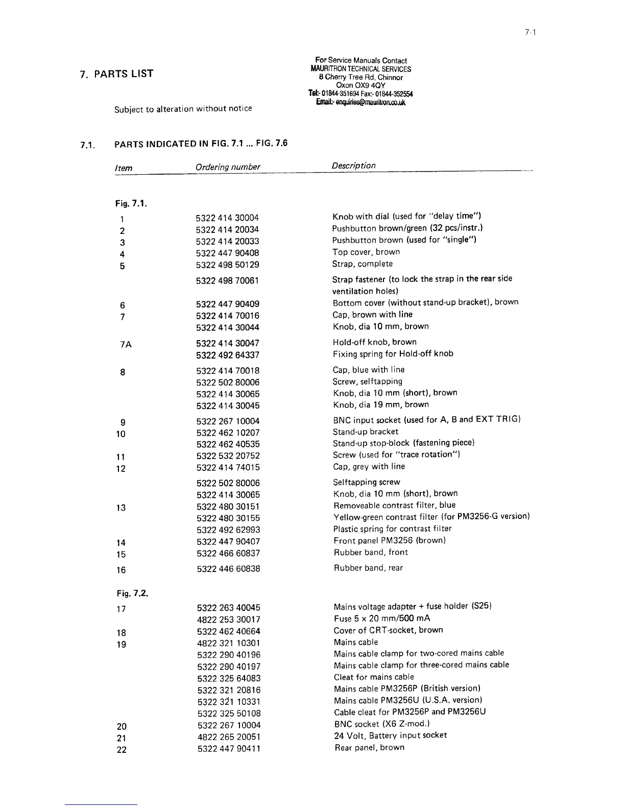 Philips PM 3256U - PARTS LIST; Parts Indicated in Figures
