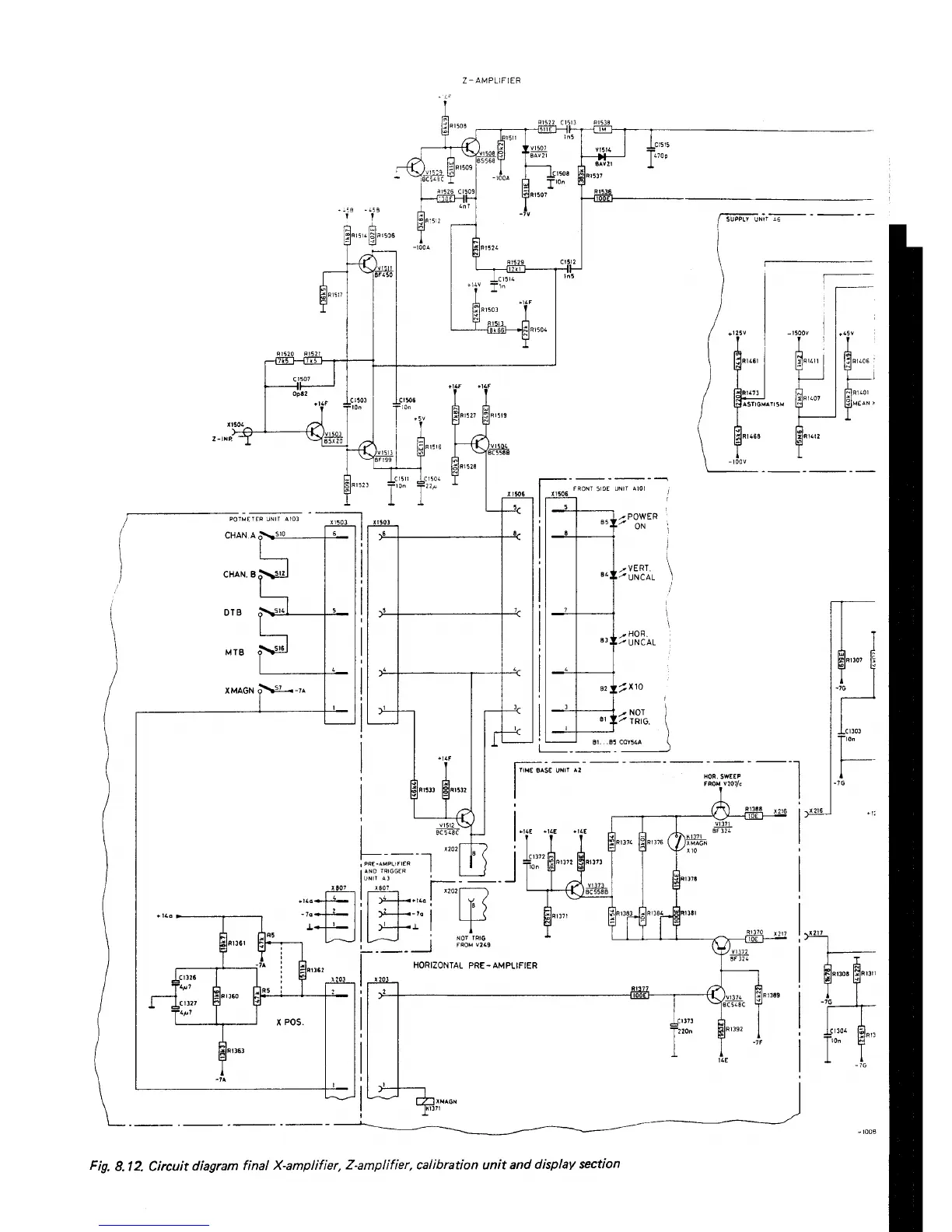 Philips PM 3256U - Circuit diagram final X-amplifier, Z-amplifier, calibration unit and display section