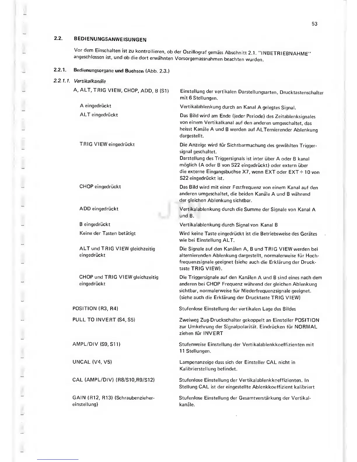 Einstellung der Vertikalablenkkoeffizienten.