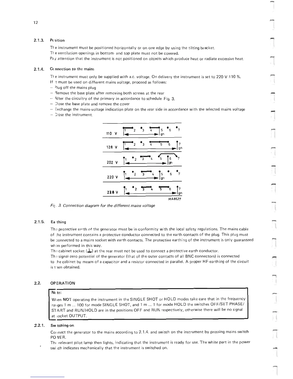 Philips PM 5167 - 4. Connection to the Mains; Operation; 1. Switching on