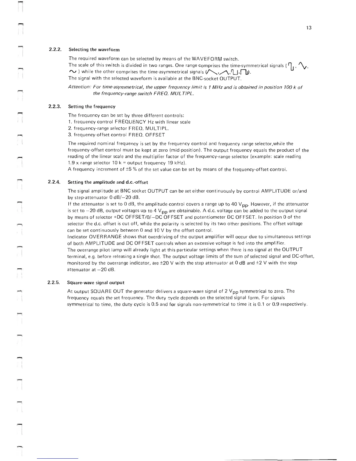 Philips PM 5167 - 3. Setting the Frequency; 4. Setting the Amplitude and D.C.-Offset; 5. Square-Wave Signal Output