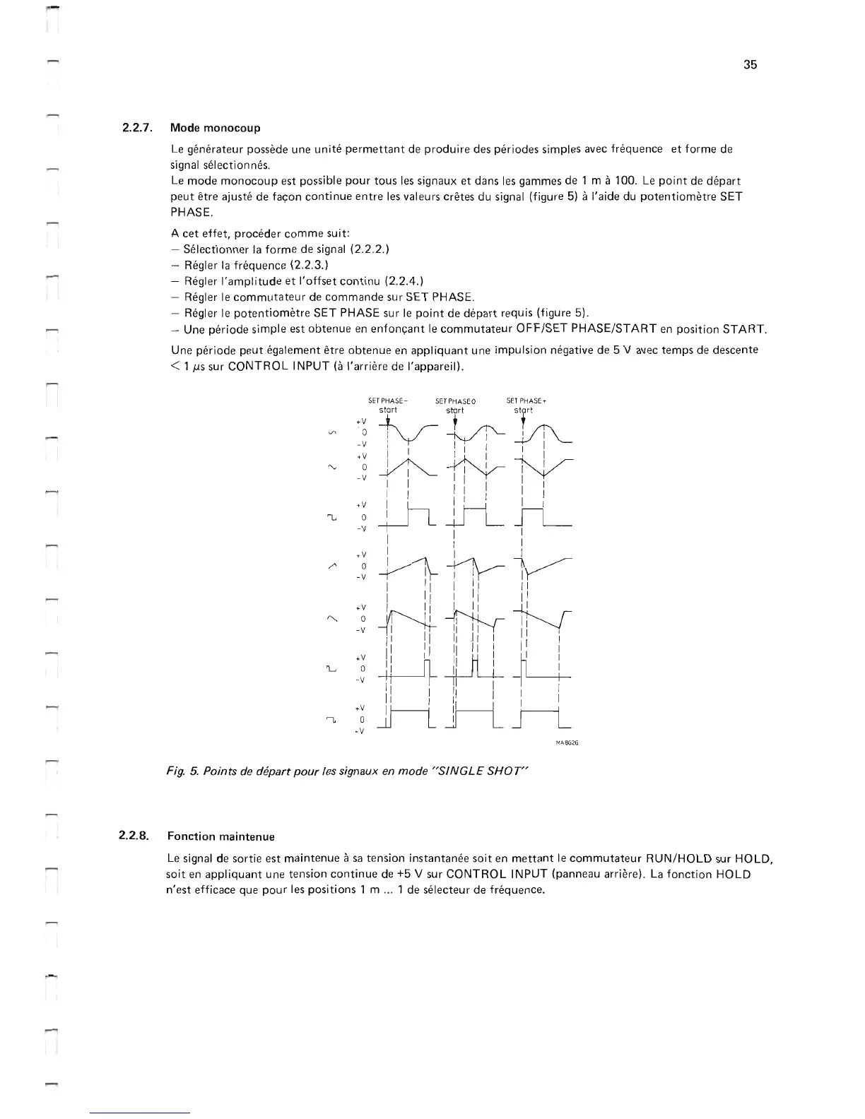 Philips PM 5167 - Mode Monocoup; Points de Depart Pour Les Signaux en Mode Single Shot