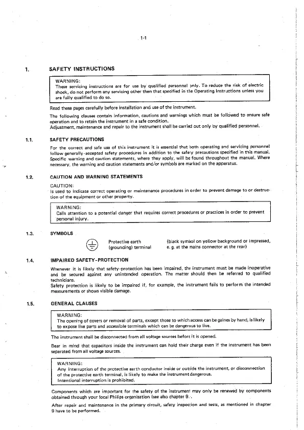 Philips PM 5193 - SAFETY INSTRUCTIONS; Safety Precautions; Caution and Warning Statements; Symbols