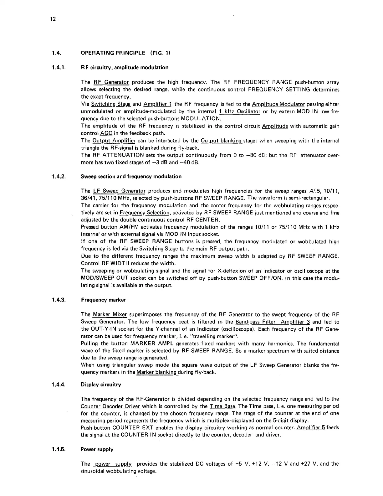 unmodulated or amplitude-modulated by the internal 1 kHz Oscillator or by extern MOD IN low fre-