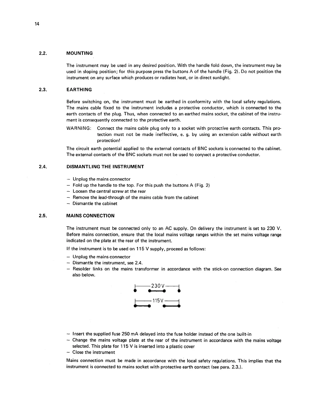 earth contacts of the plug. Thus, when connected to an earthed mains socket, the cabinet of the instru-