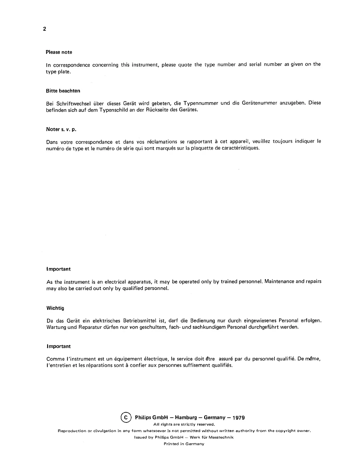 In correspondence concerning this instrument, please quote the type number and serial number as given on the