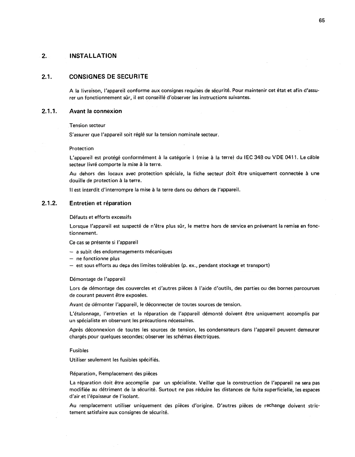 A la livraison, I'appareil conforme aux consignes requises de securit6. Pour maintenir cet