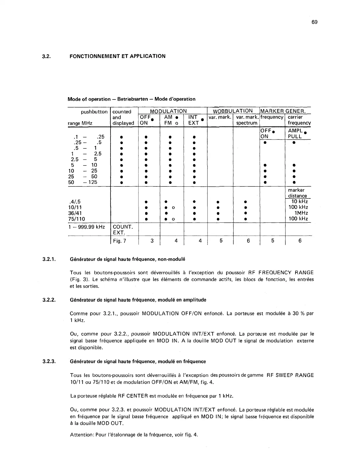 1011 1 ou 7511 10 et de modulation OFFION et AMIFM, fig. 4.