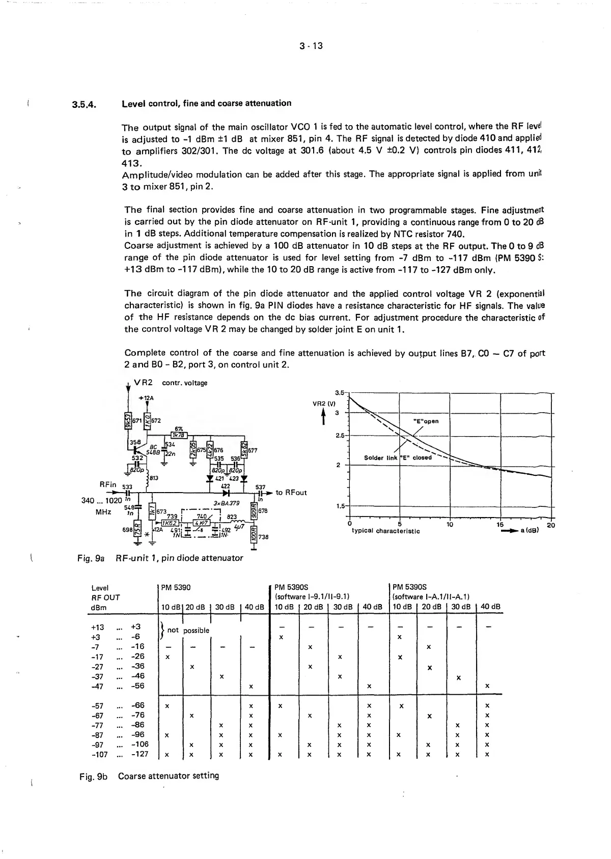 Philips PM 5390 - Coarse Attenuator Setting; Control, Fine; Level Control, Fire and Coarse Attenuation; RF-Unit 1, Pin Diode Attenuator