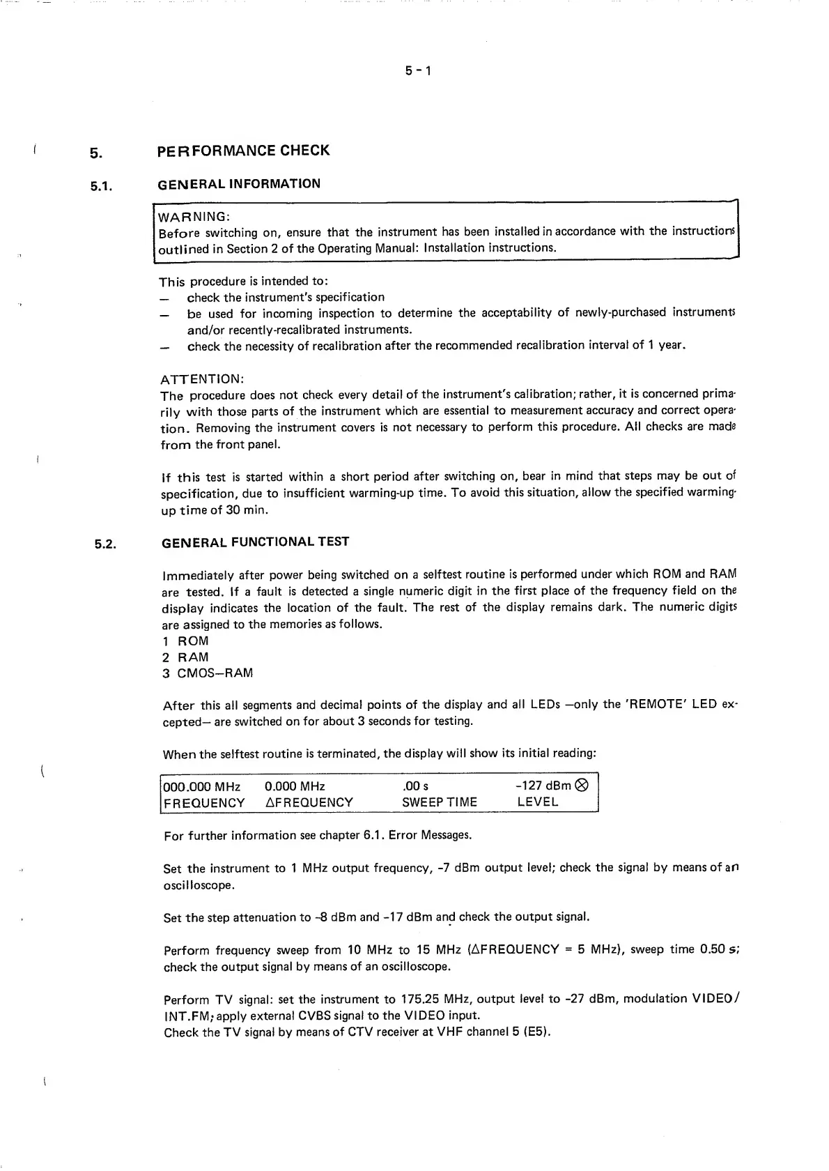 Philips PM 5390 - Performance Check; General Information; General Functional Test