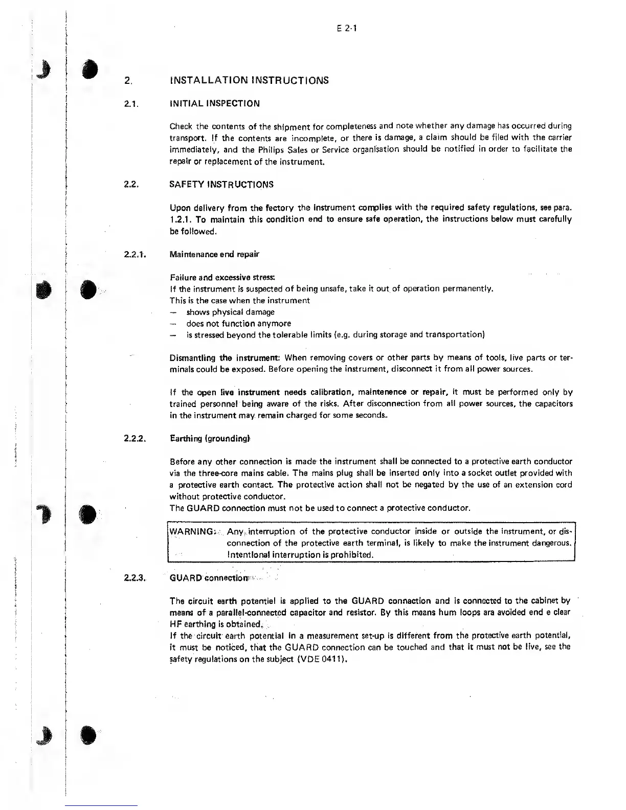the protective earth terminal, is likely to make the instrument dangerous.