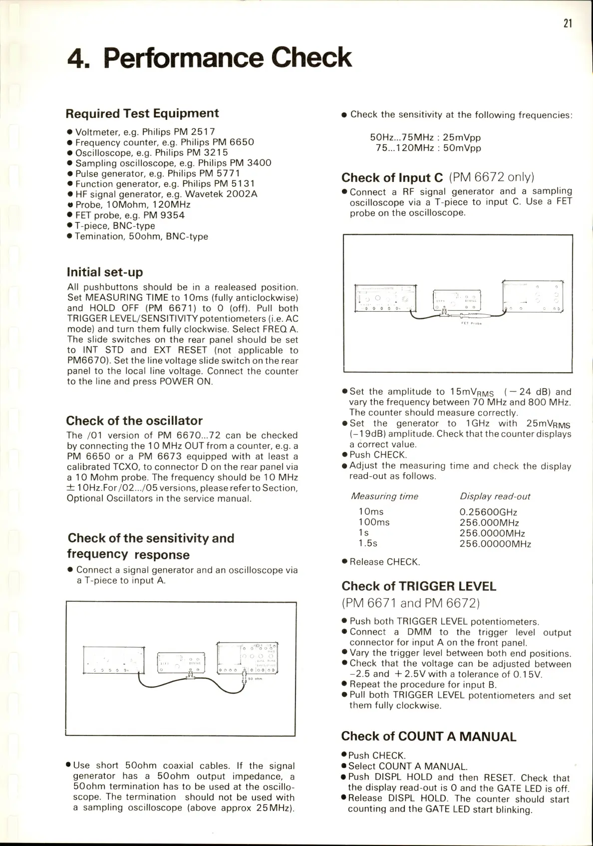 Philips PM 6671 - 4. Performance Check; Oscillator and Frequency Response Checks; Input C and Trigger Level Checks