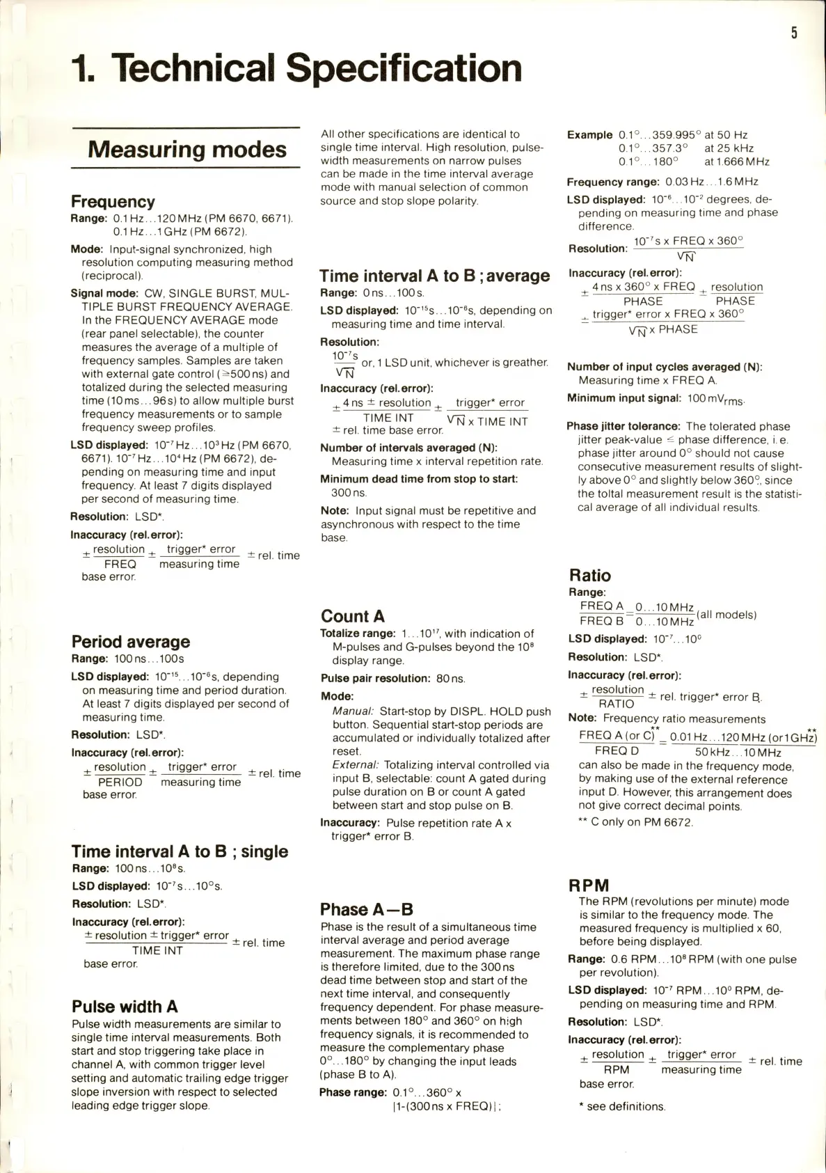 Philips PM 6672 - Technical Specification; Measuring Modes