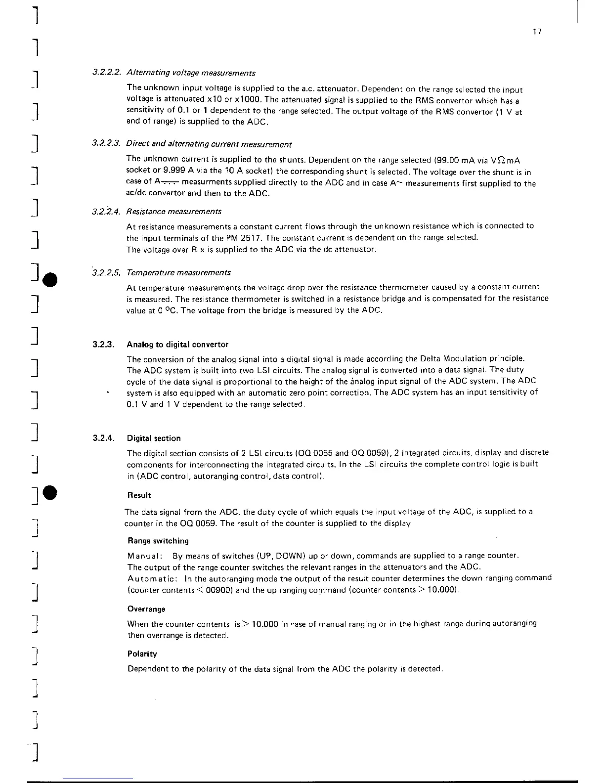 Philips PM2517X - Analog to Digital Converter; Digital Section; Direct and Alternating Current Measurement; Alternating Voltage Measurements