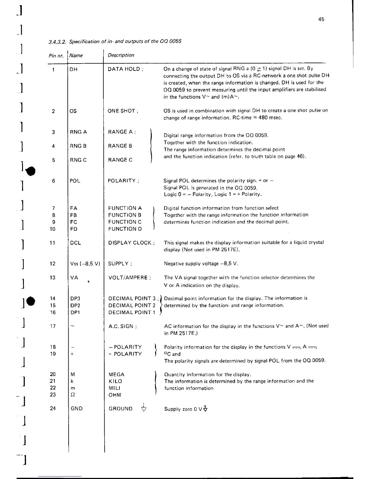 Philips PM2517X - 3.4.3.2. Specification of in- and outputs of the OO 0055