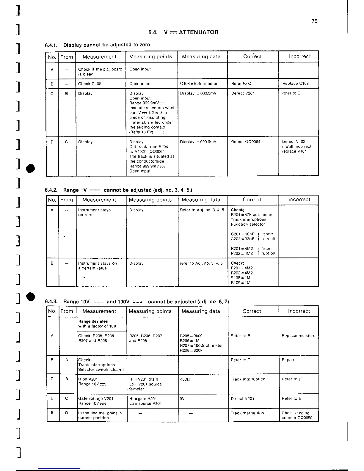 Philips PM2517X - 6.6.2. Display will nol become zero with VQ;O short circuited (Vru lunction); 6.6.3. Adjustmenls cannot be made (Adj. no. l0)