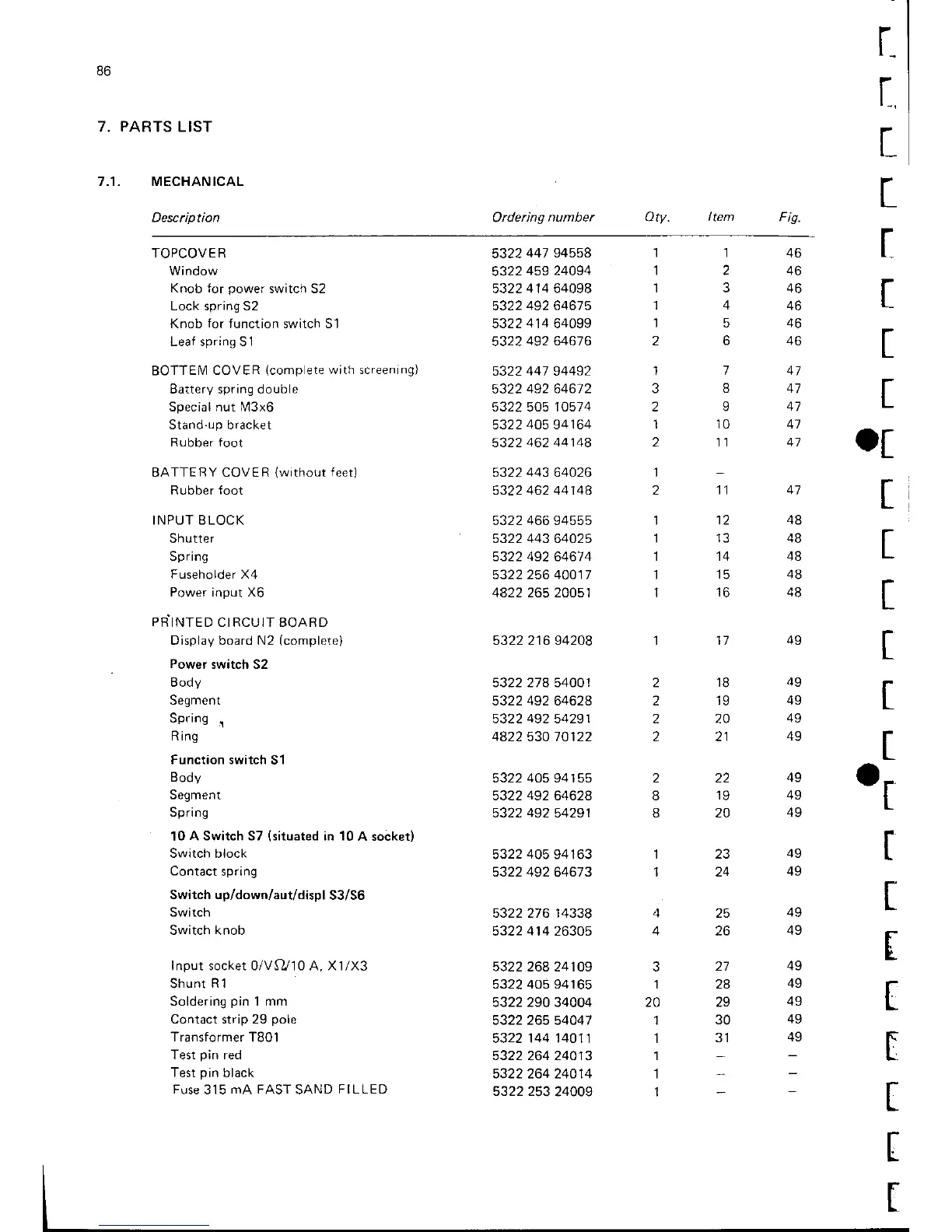 Philips PM2517X - Parts List; Mechanical; L V L E C H a N I C a L; O L T a G E M E a S U R E M E N T S