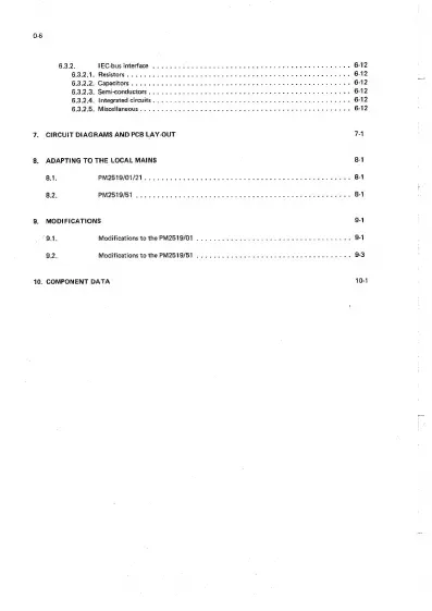 Philips PM2519 - 6. PARTS LIST; 6.1. Main pcb; 6.2. Additions to the parts list for PM2519;21 (battery version); 6.3. Additions to the parts list for PM 2519;51