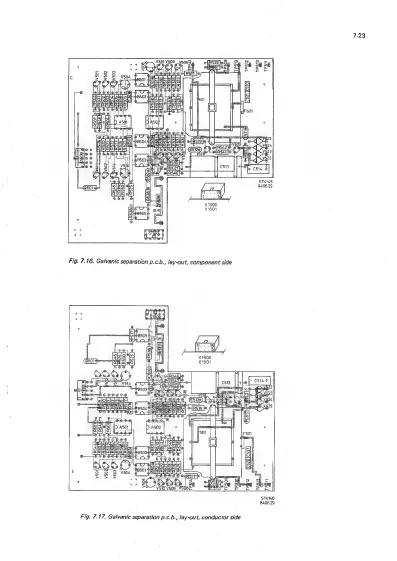 Philips PM2519 - Fig. 7.16. Galvanic separation p.c.b., lay-out, component side; Fig. 7.17. Galvanic separation p.c.b., lay-out, conductor side