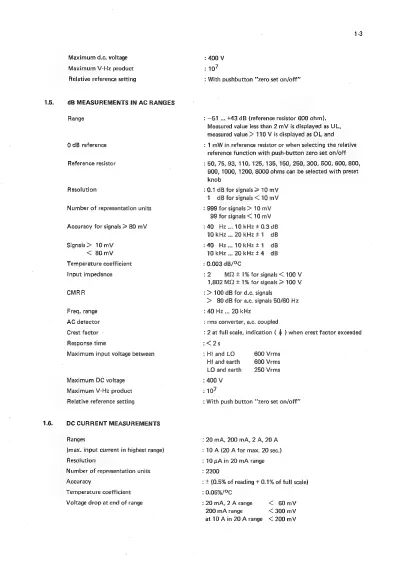 Philips PM2519 - 1.5. dB MEASUREMENTS IN AC RANGES; 1.6. DC CURRENT MEASUREMENTS