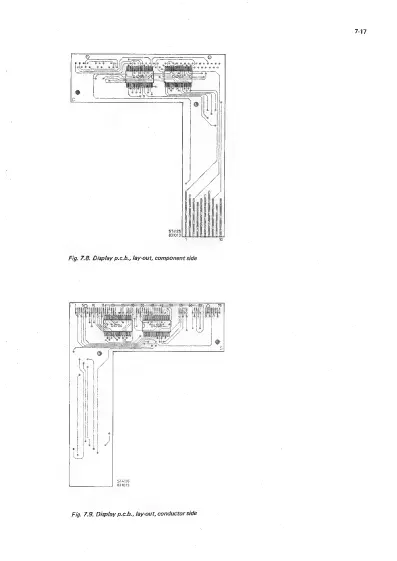 Philips PM2519 - Fig. 7.8. Display p.c.b., lay-out, component side; Fig. 7.9. Display p.c.b., lay-out, conductor side