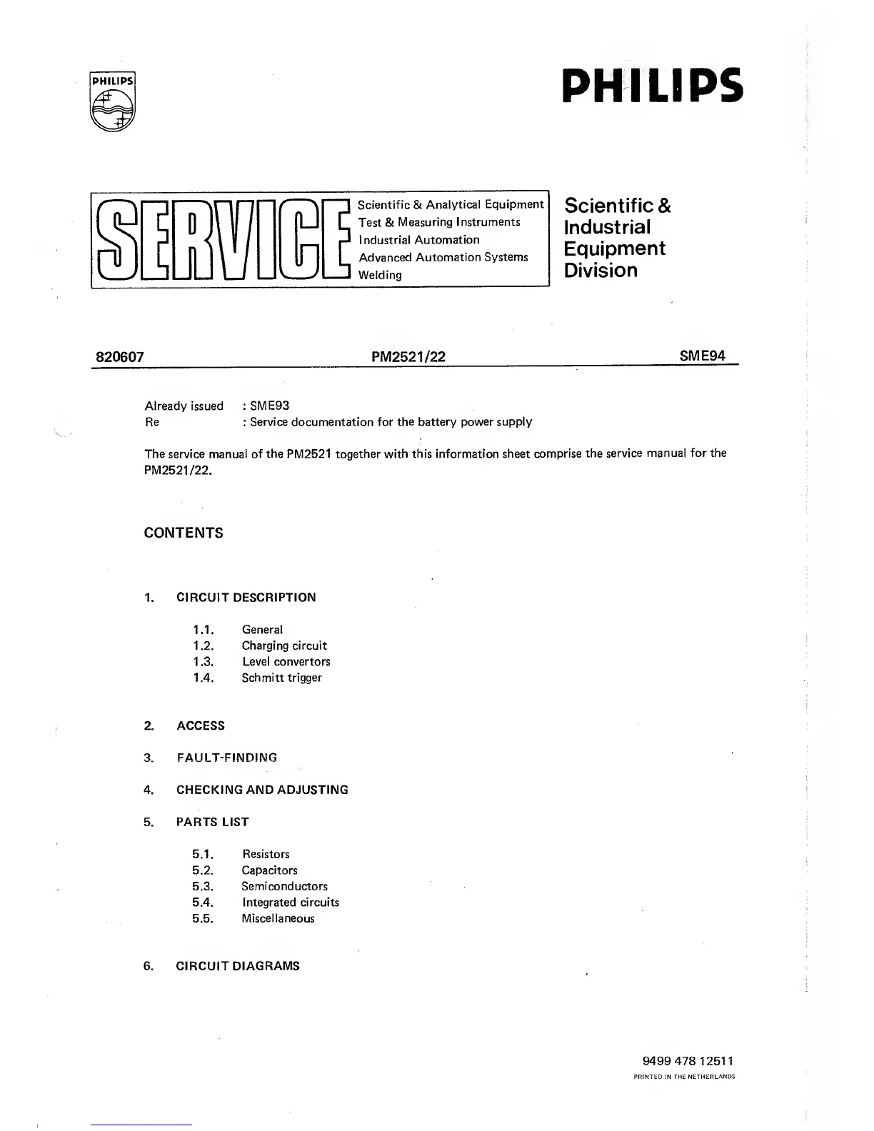 The service manual of the PM2521 together with this
