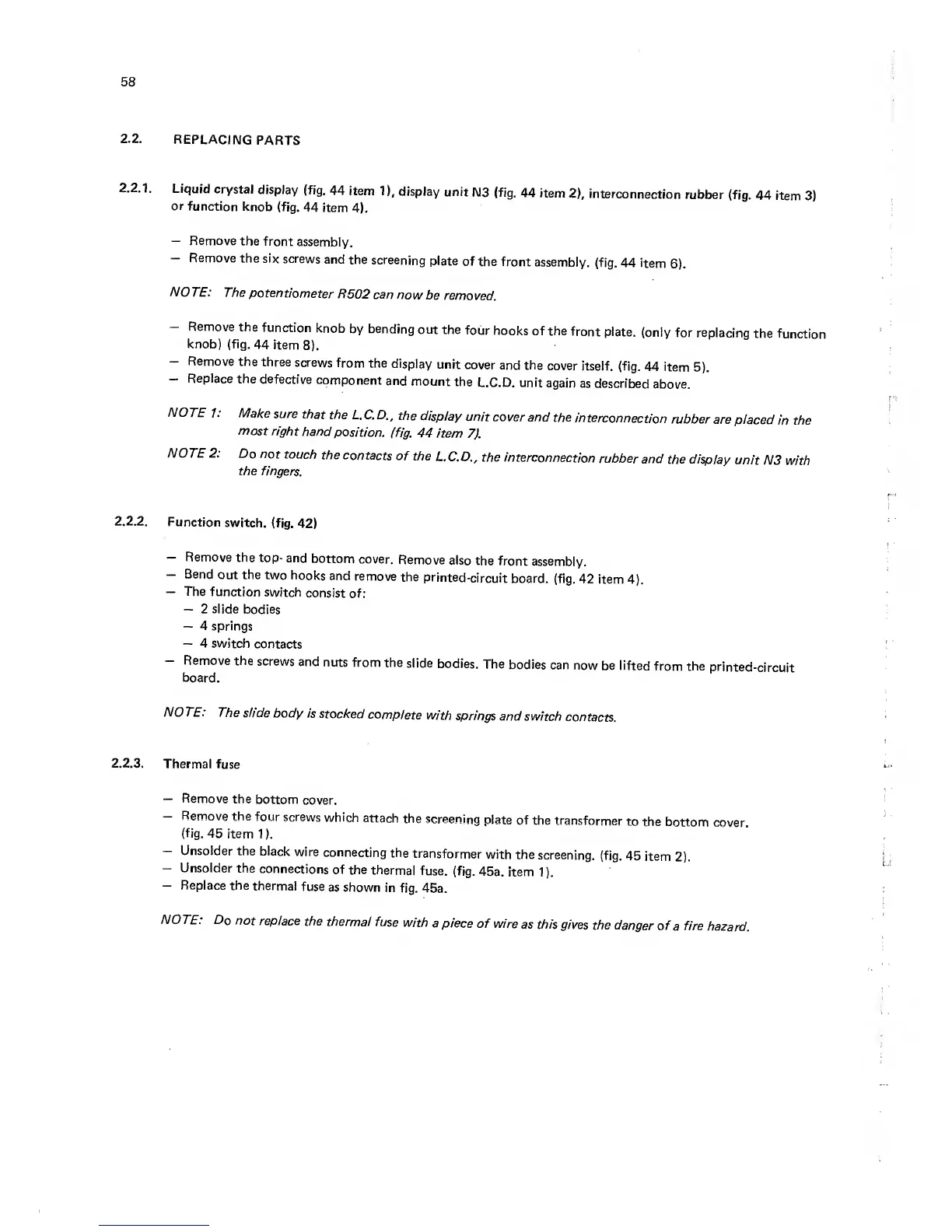 Philips pm2521 - Replacing Parts; Function Switch; Thermal Fuse