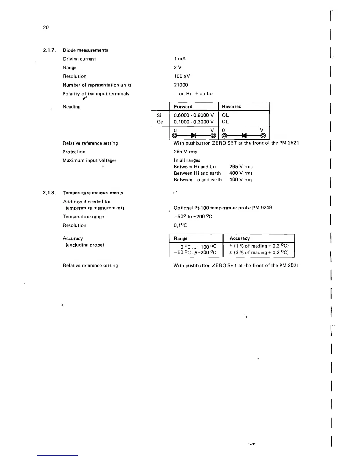 Philips pm2521 - 2.1.7. Diode measurements; 2.1.8. Temperature measurements