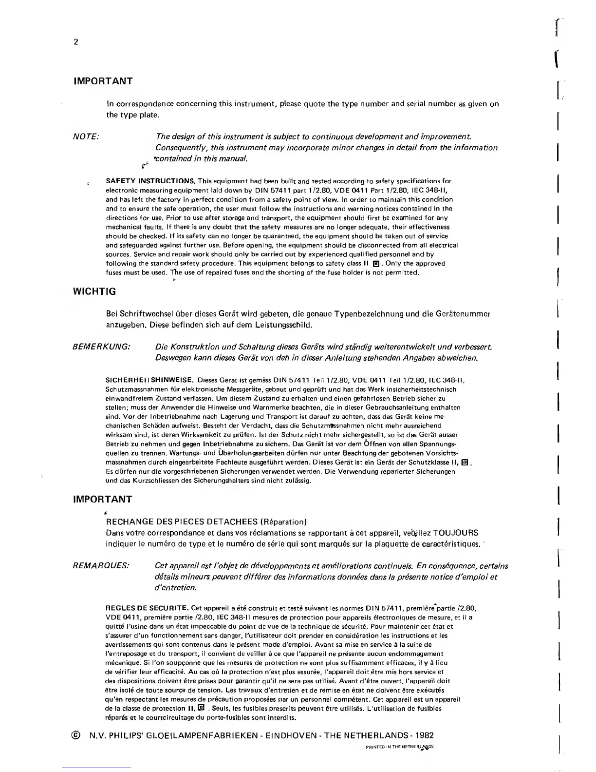 Philips pm2521 - Safety Information; SAFETY INSTRUCTIONS