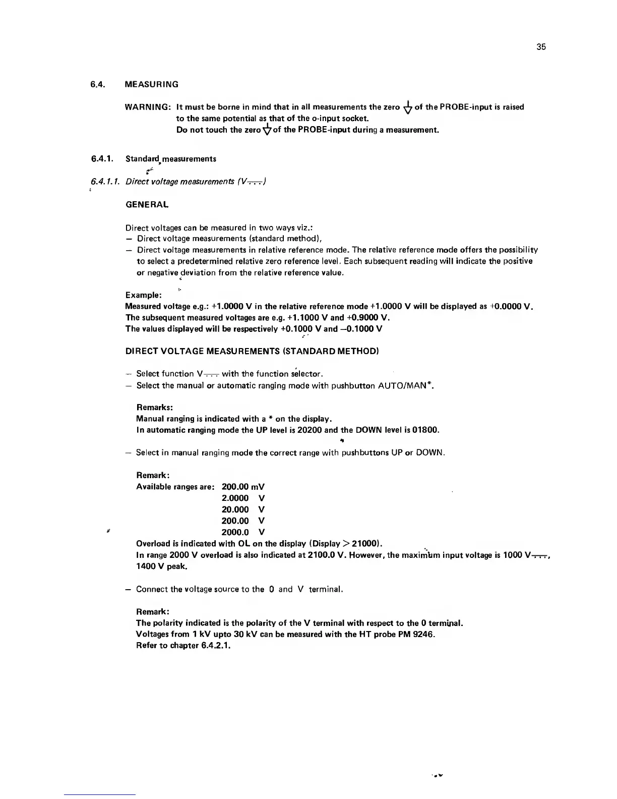 Philips pm2521 - 6.4.1.1. Direct voltage measurements (V.); DIRECT VOLTAGE MEASUREMENTS (STANDARD METHOD)