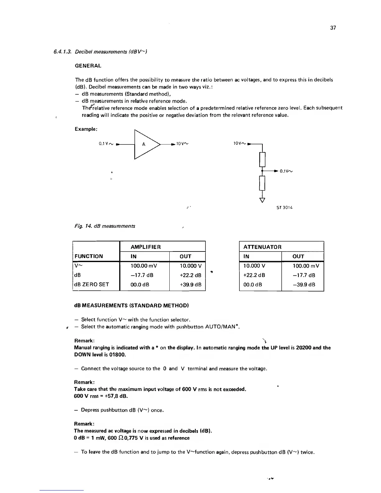 Philips pm2521 - 6.4.1.3. Decibel measurements (dBV~); dB MEASUREMENTS (STANDARD METHOD); dB MEASUREMENTS IN RELATIVE REFERENCE MODE (ZERO SET)