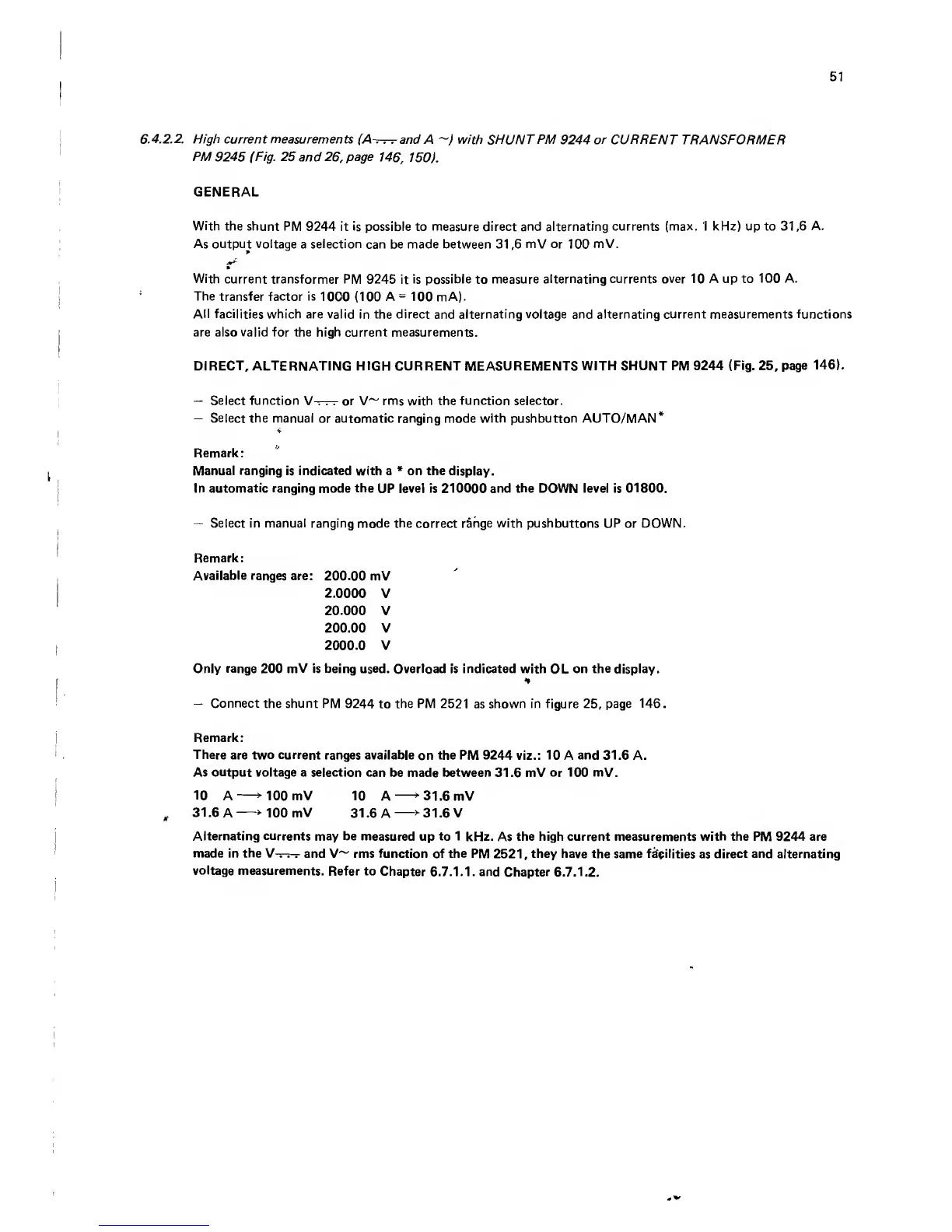Philips pm2521 - 6.4.2.2. High current measurements (A and A~) with SHUNT PM 9244 or CURRENT TRANSFORMER PM 9245